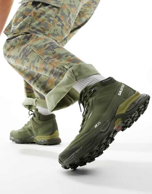 Salomon Shelter CSWP waterproof trainers in olive night and deep lichen green