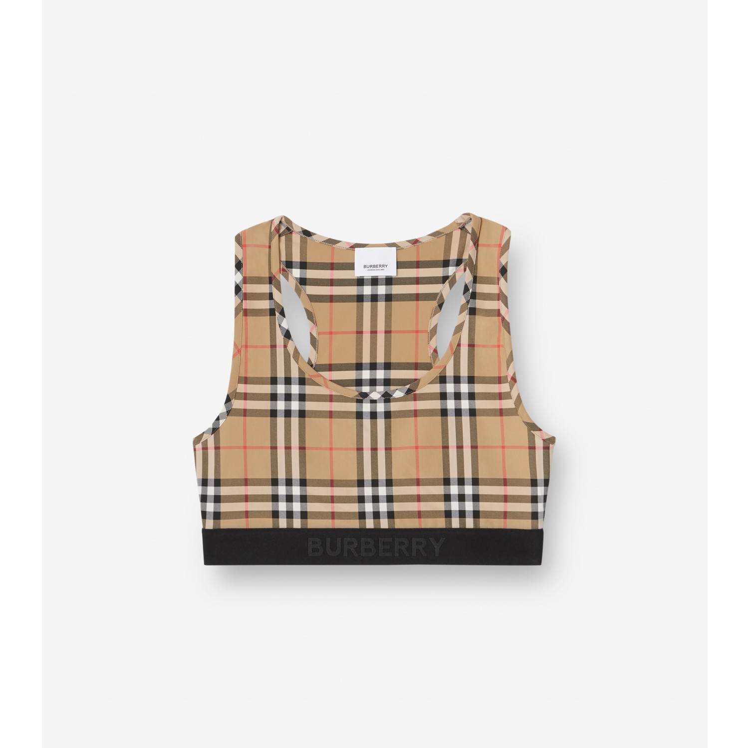 Logo Detail Vintage Check Bra Top in Archive beige Burberry