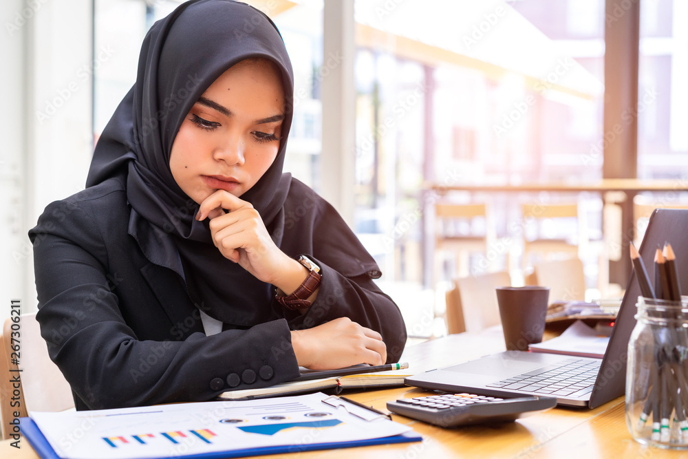 Young asian muslim business woman in smart casual wear discussing