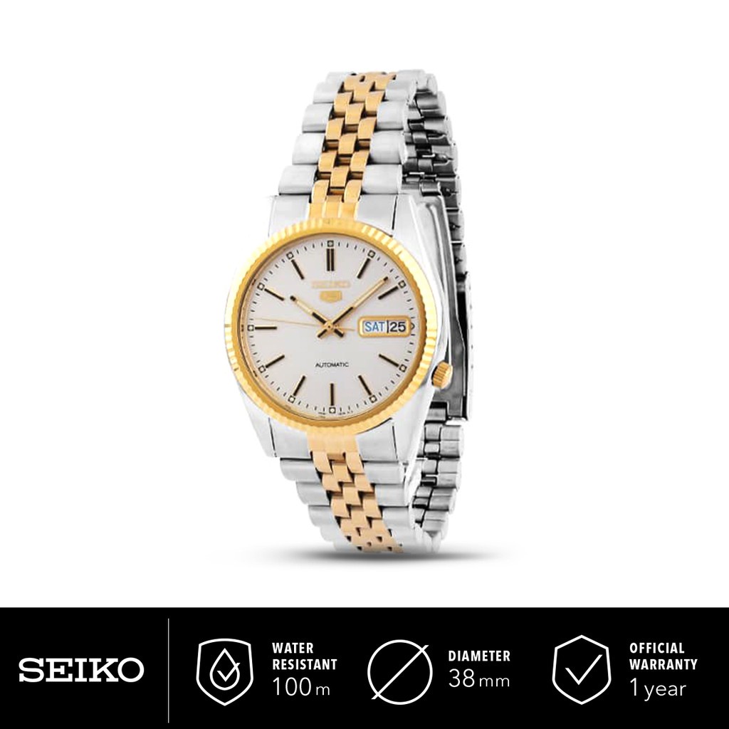 Jam Tangan Pria Seiko 5 SNXJ90K1 Automatic White Dial Two Tone Stainless Steel SNXJ90 Original