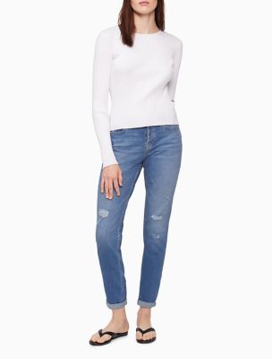 Boyfriend Slim Fit Mid Rise Distressed Jeans Calvin Klein