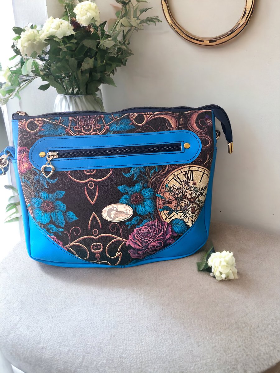 Crossbody bag in blue and patterned faux leather Folksy