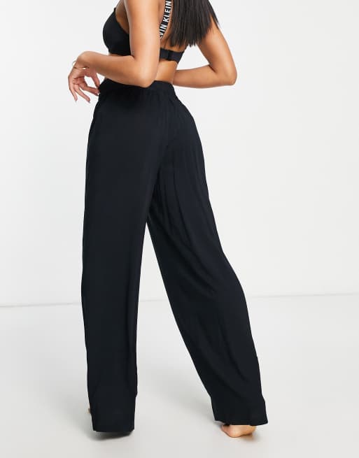 Calvin Klein monogram beachwear high waist pants in black ASOS