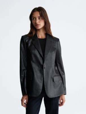 Calvin Klein Women s Four Button Faux Leather Blazer Macy s