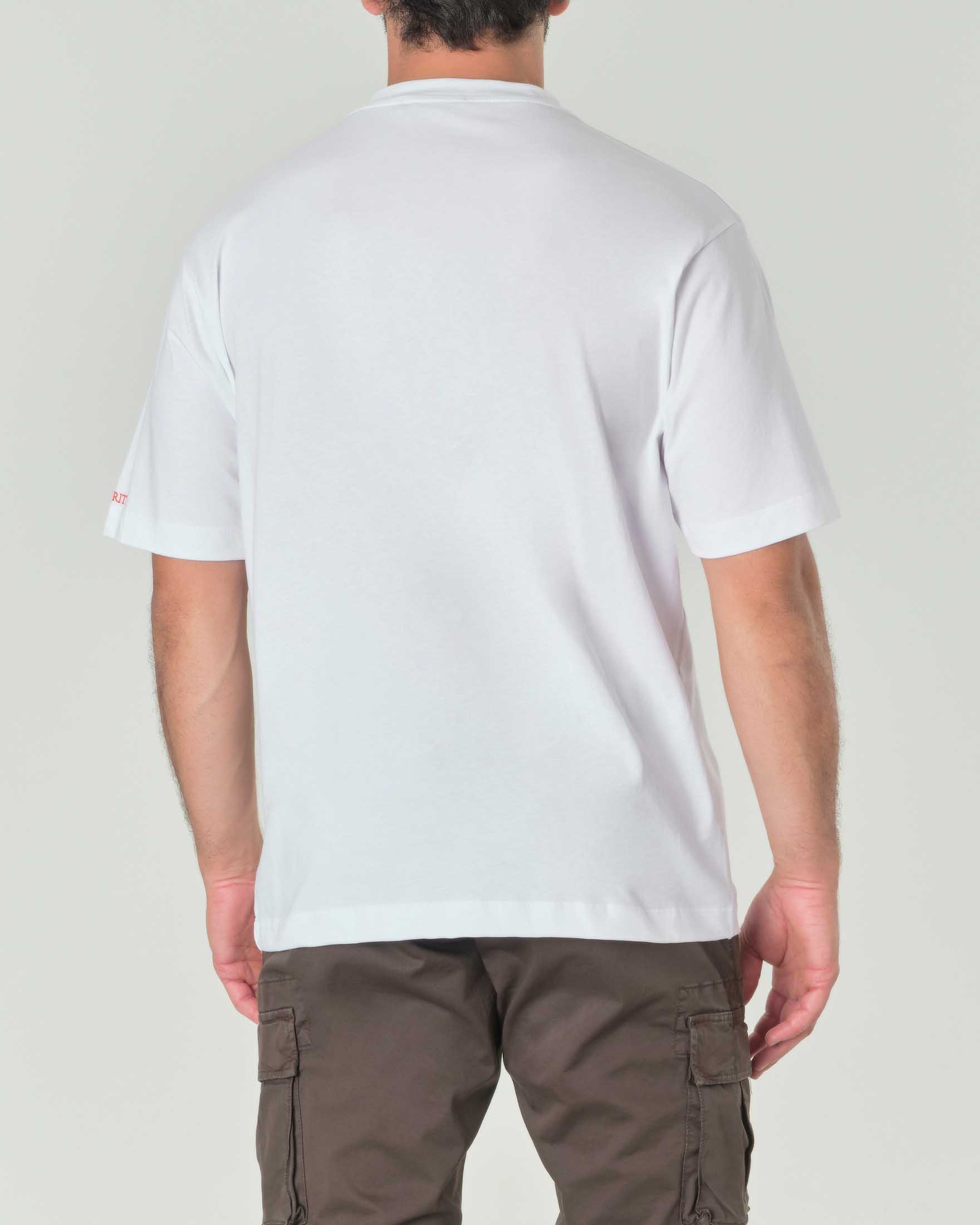 T shirt bianca oversize in puro cotone con logo arancio ricamato