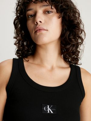 Calvin Klein Jeans woven label ribbed tank top in black ASOS