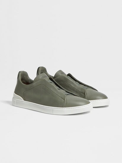 Light Military Green Soft Calf Triple Stitch Low Top Sneakers