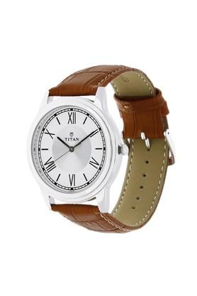Buy TITAN Mens 46 x 8.20 x 39 mm Silver White Dial Leather Analog
