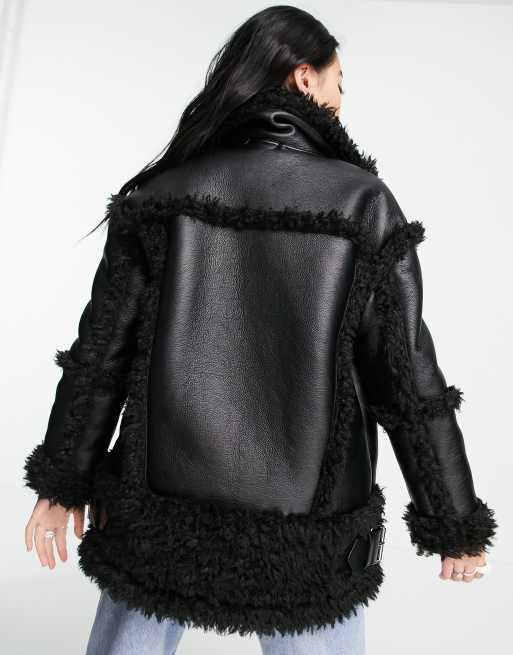 Topshop faux fur biker shop jacket, Topshop faux leather oversized biker jacket with faux fur details shop