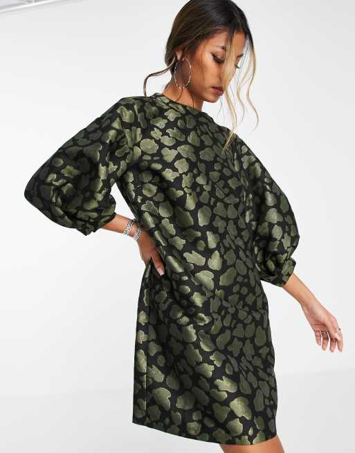 Topshop metallic jacquard animal mini dress in green ASOS
