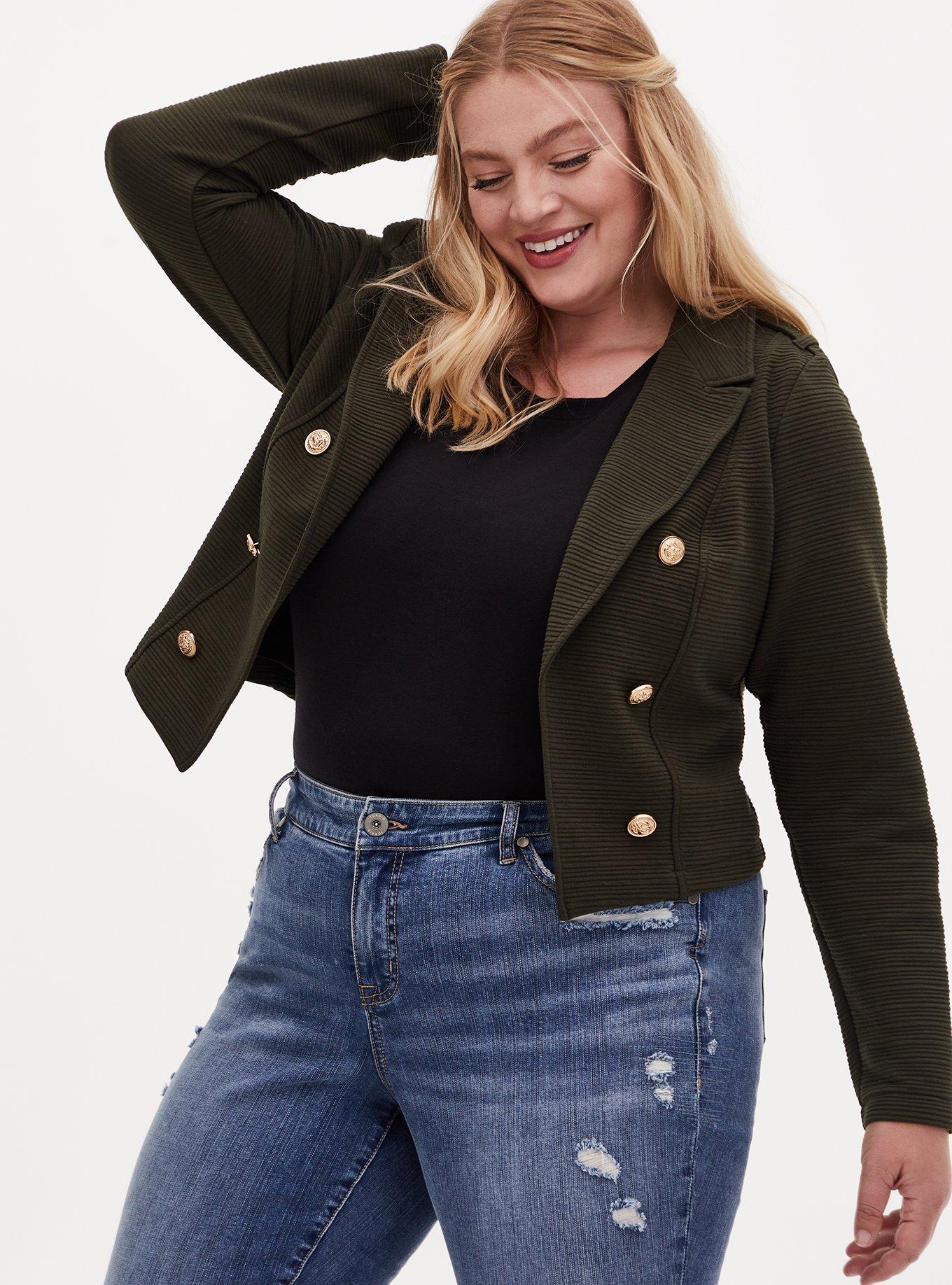 Plus Size Textured Ponte Crop Military Jacket Torrid
