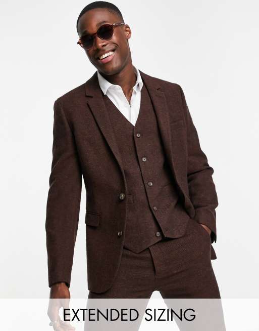 ASOS DESIGN super skinny wool mix suit jacket in dark brown tweed