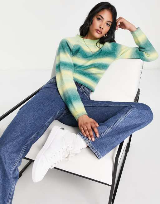 Lola May open twist back sweater in green space dye