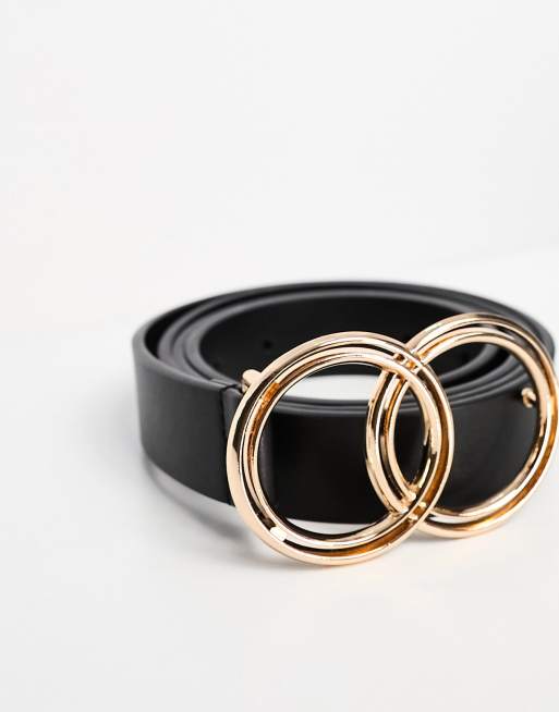 ASOS DESIGN Curve beveled double circle waist and hip belt in gold metal work