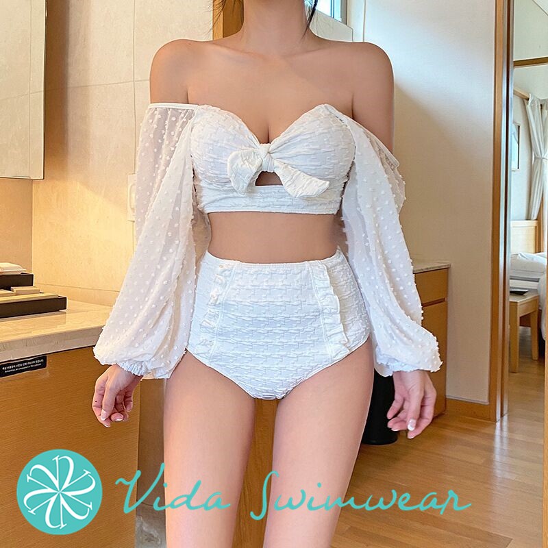 Bikini Puff Sleeve Two Piece Swimwear Offshoulder Korean Swimsuit