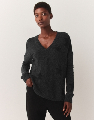 Sequin Star V Neck Jumper Clothing Sale The White Company UK