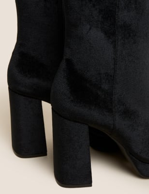 Black Velvet Camel Chunky Heel Platform Boots Gothic Boots for Women