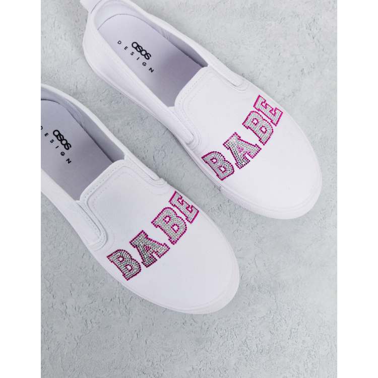 ASOS DESIGN Dotty slip on plimsolls with babe heatfix ASOS