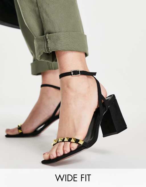 ASOS DESIGN Wide Fit Holt studded mid heeled sandals in black ASOS