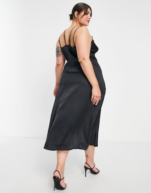 ASOS DESIGN Curve lace insert satin midi slip dress in black ASOS