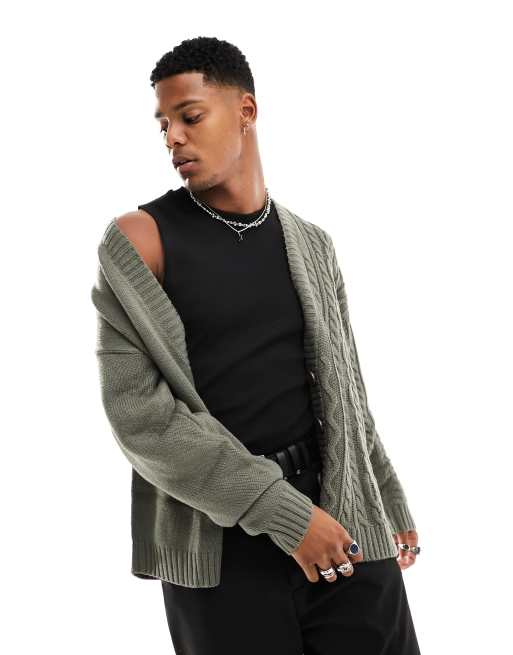 ASOS DESIGN heavyweight cable knit cardigan in grey ASOS
