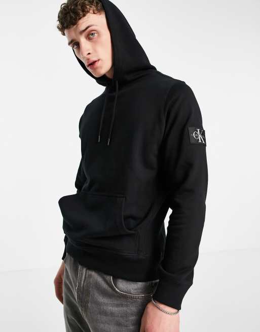 Calvin Klein Jeans monogram badge hoodie in black ASOS