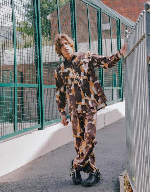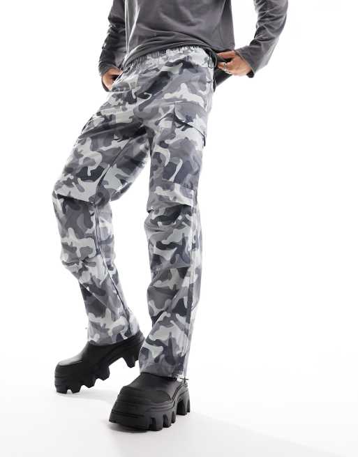 ASOS DESIGN wide leg pants in gray camo print ASOS