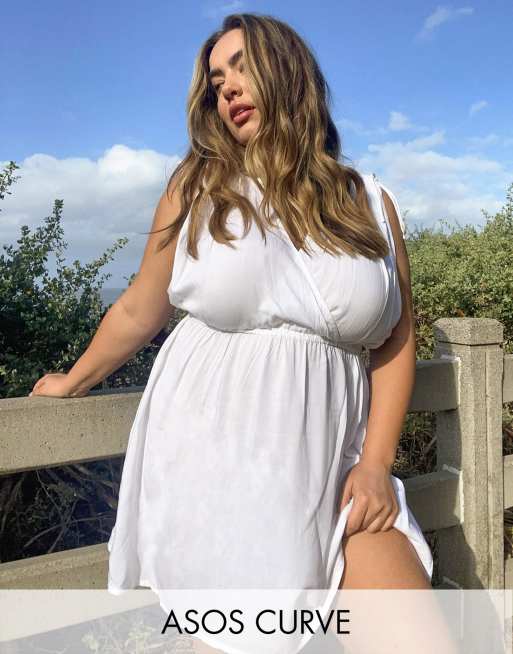 ASOS DESIGN Curve Vestito da mare corto raccolto in vita bianco