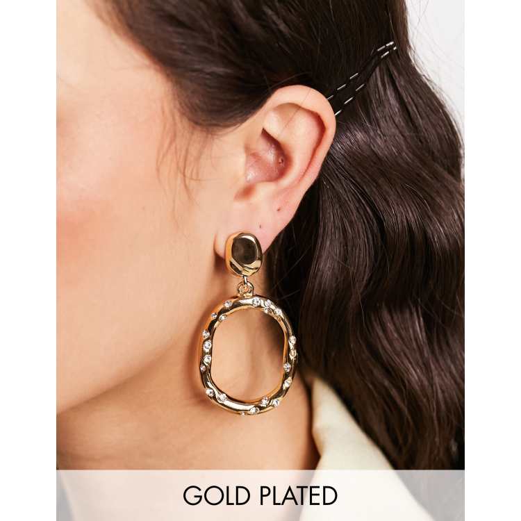 ASOS DESIGN drop earrings with celestial crystal design in gold