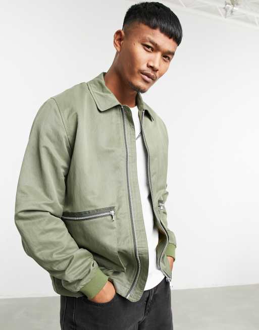 Asos design shop harrington jacket, ASOS DESIGN Harrington jacket in khaki with contrast trim detail shop