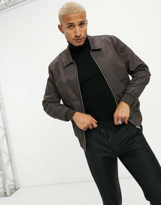 ASOS DESIGN harrington jacket with storm vent in brown ASOS