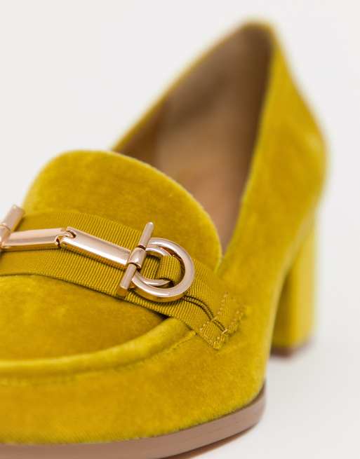 ASOS DESIGN Stirrup mid heeled loafers in mustard ASOS