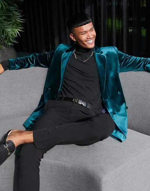 ASOS DESIGN super skinny double breasted blazer in forest green