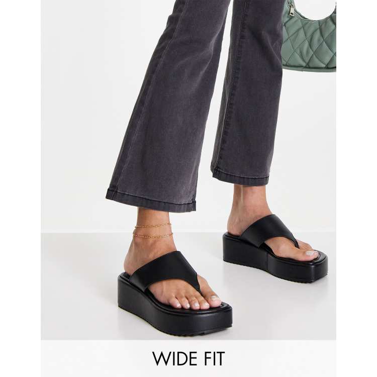 ASOS DESIGN Wide Fit Tamari leather toe thong flatform sandals in