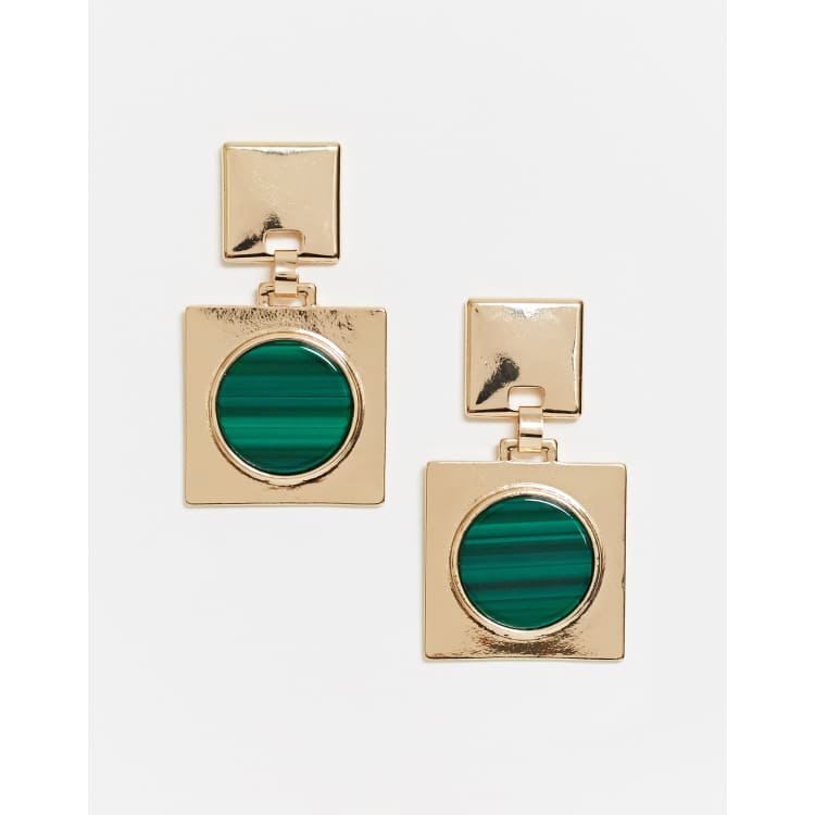 ASOS DESIGN earrings with green stone square drop in gold tone ASOS