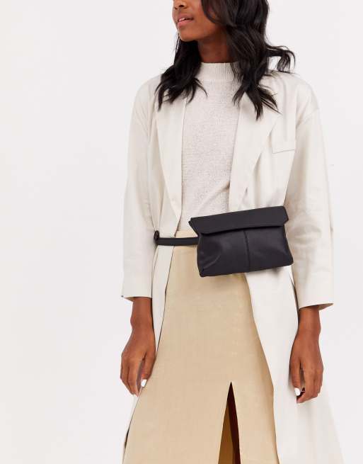 ASOS DESIGN bum bag in black leather with front pouch ASOS