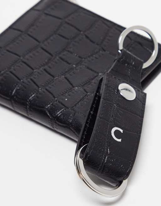 ASOS DESIGN leather keyring and wallet set with C initial ASOS