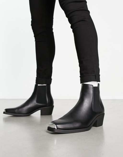 ASOS DESIGN stacked heel western chelsea boots in black faux