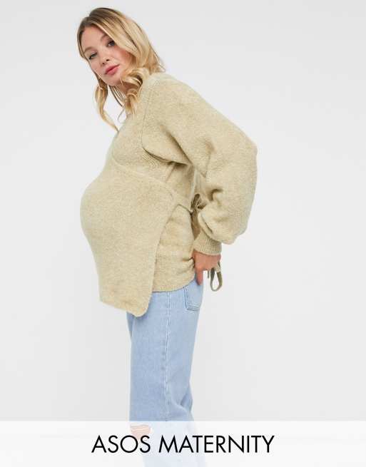 ASOS DESIGN Maternity wrap fluffy sweater in oatmeal ASOS