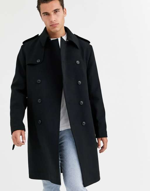 Asos mens shop black coat, ASOS DESIGN double breasted trench coat in black ASOS shop