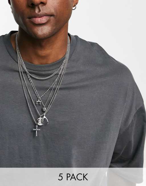 ASOS DESIGN 5 pack necklace set with cross and wishbone pendants