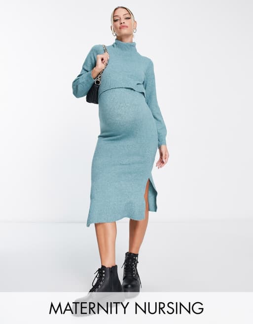 Mamalicious Maternity nursing roll neck 2 function knitted midi