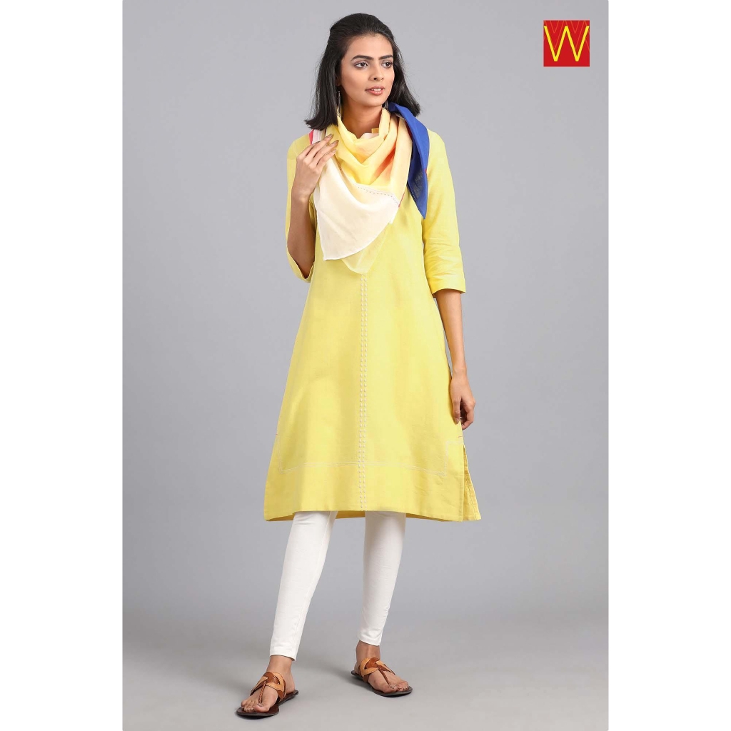 W For Woman Kurti Yellow Mandarin Neck Women 3 4 Sleeve Indian