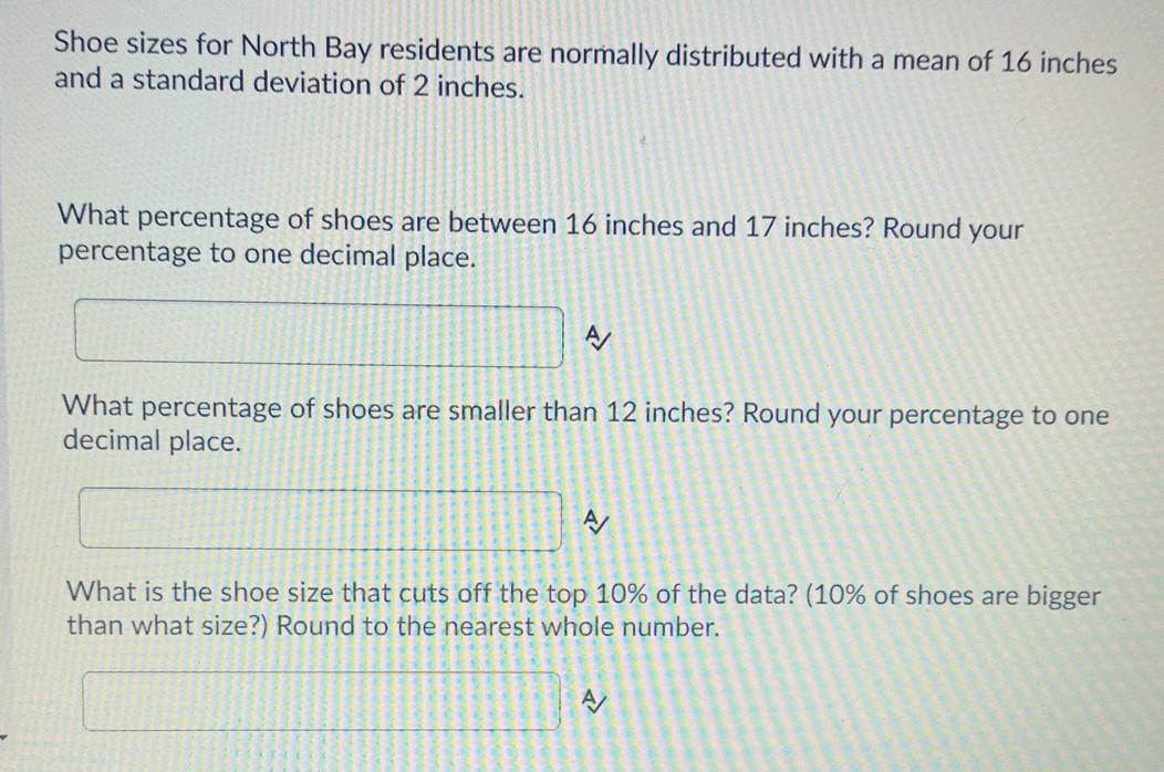 Solved Shoe sizes for North Bay residents are normally Chegg