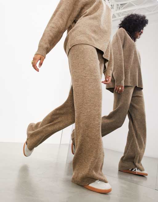 ASOS EDITION Pantaloni in maglia a fondo ampio grigio talpa a