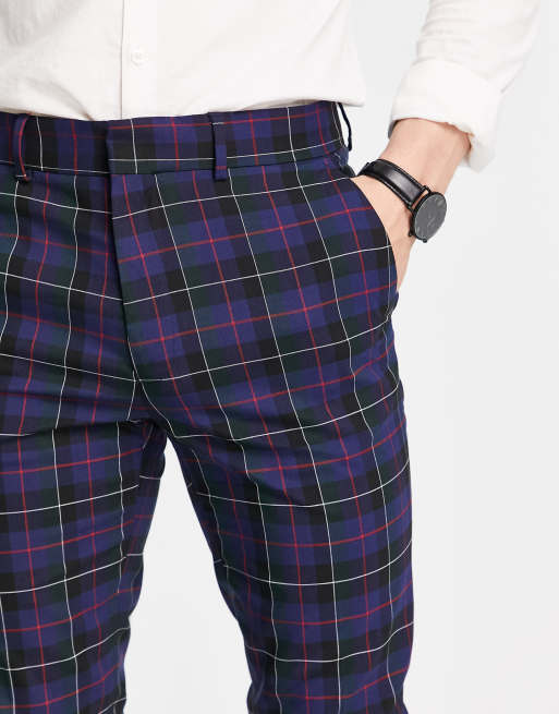 ASOS DESIGN Pantaloni skinny eleganti a quadri scozzesi blu navy