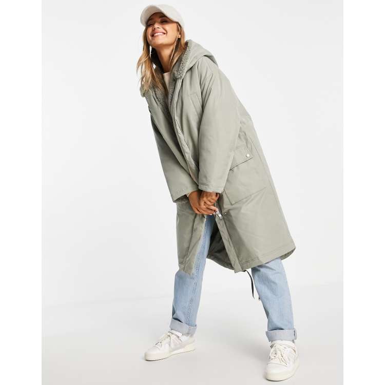 ASOS DESIGN oversized borg lined parka coat in dark khaki ASOS