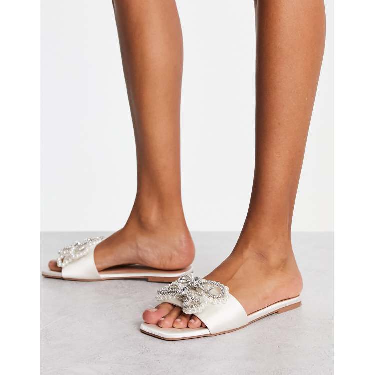 ASOS DESIGN Flo embellished bow flat sandal in ivory ASOS