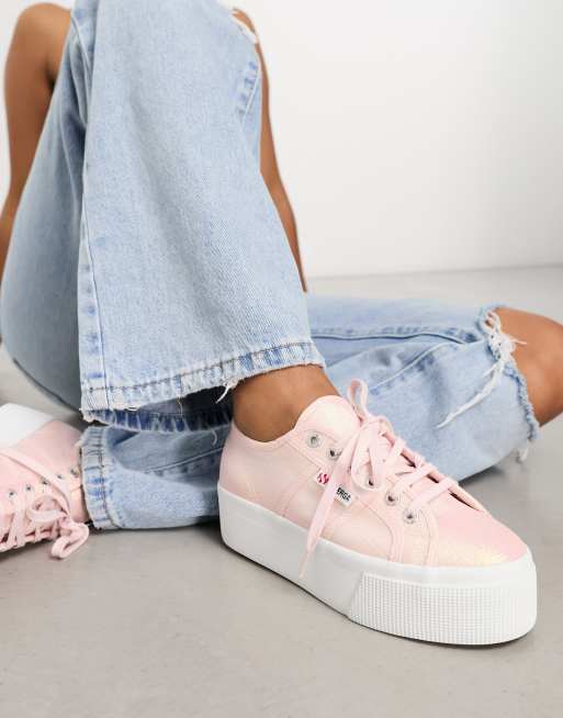Superga 2790 flatform trainers in pink iridescent exclusive to