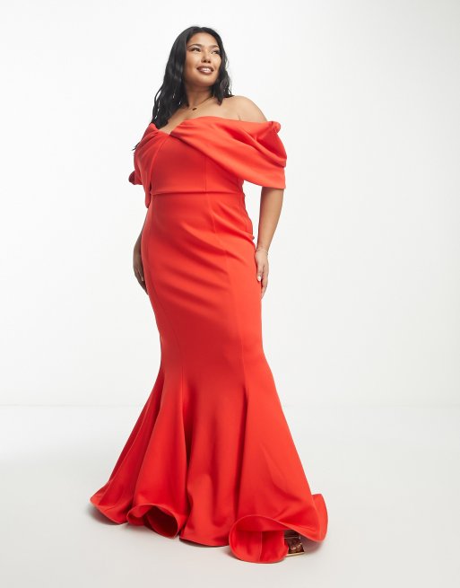 ASOS DESIGN Curve extreme drape sleeve wide hem maxi dress in red